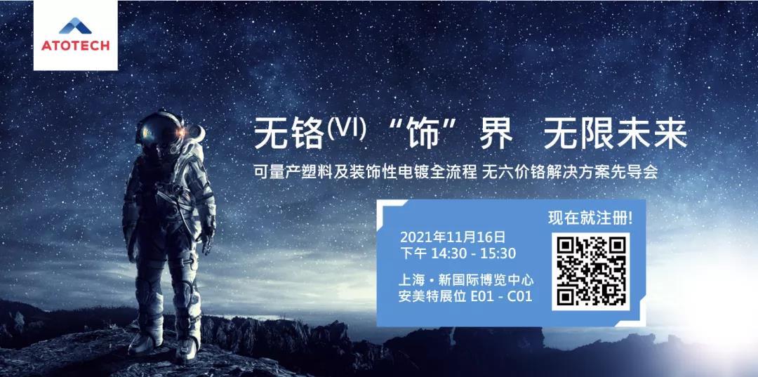 研讨會 | 無(wu)鉻(VI)“飾”界,無(wu)限未來!可(ke)量産塑料(liao)及裝飾性(xing)電💕鍍全流(liu)程無六價(jia)鉻解決方(fang)案先導會(hui)