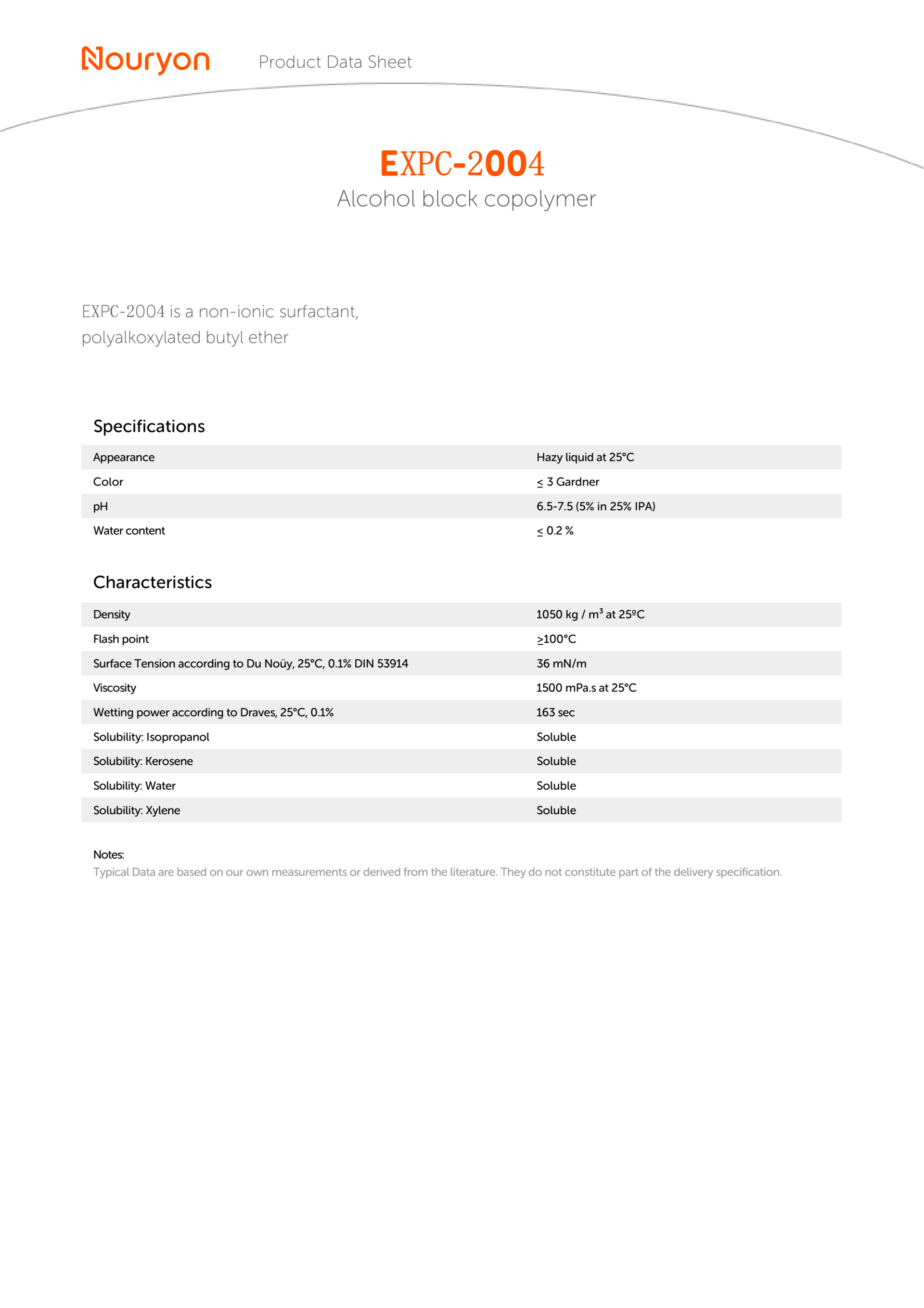 Surface Tension according to Du Noüy, 25°C, 0.1% DIN 53914 36 mN/m