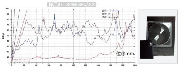 塗(tu)碳鋁箔(bo)與光箔(bo)的電池(chi)極片粘(zhan)附力測(ce)試圖