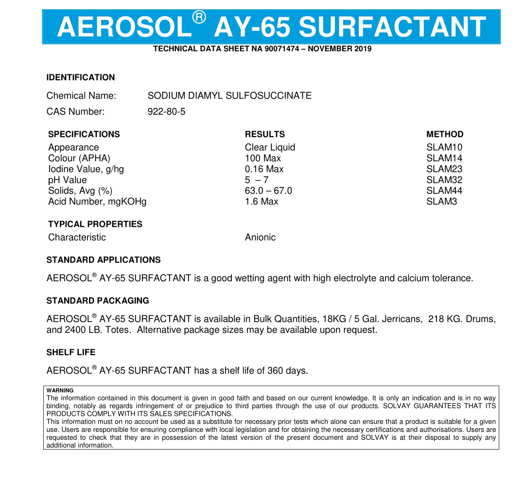 磺(huang)基丁(ding)二酸(suan)二戊(wu)基鈉(na)鹽(乙(yi)醇和(he)水的(de)65%陰離(li)子溶(rong)液),易(yi)被生(sheng)💞物降(jiang)解,作(zuo)爲鍍(du)鎳潤(run)濕劑(ji)、鍍鉻(ge)中間(jian)體。