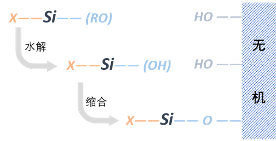 Figure 1. 矽烷(wan)偶聯(lian)劑的(de)水解(jie)縮合(he)反應(ying)