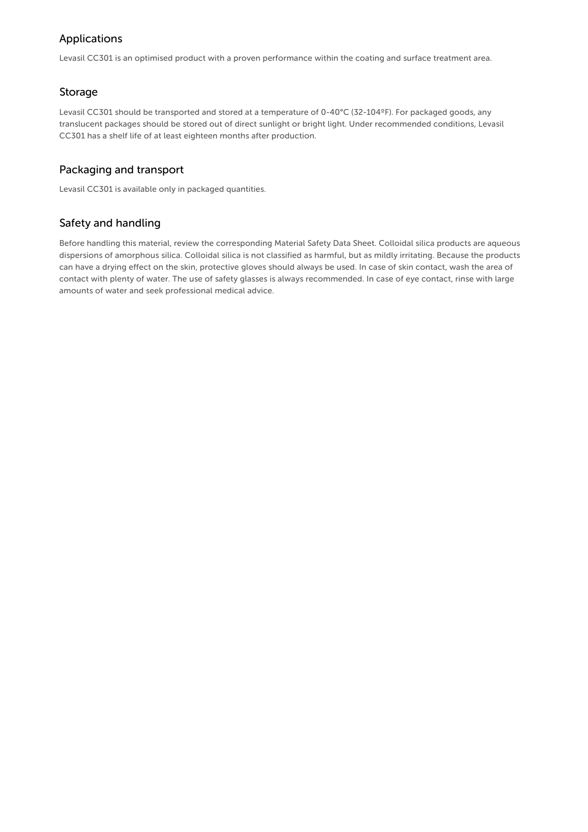 Levasil CC301是一(yi)款易于使(shi)用,安全環(huan)保的進口(kou)矽溶膠産(chan)品,專爲水(shui)性塗✋料設(she)計,具有最(zui)佳的配方(fang)兼容性和(he)突出的性(xing)能。在從溶(rong)劑型塗料(liao)轉換爲水(shui)性塗料時(shi),Levasil 是您配方(fang)中納米材(cai)料的最佳(jia)選擇,符合(he)并領先于(yu)法規,同時(shi)又爲客戶(hu)提供優勢(shi)(例如更具(ju)吸引力的(de)外觀😮💨、更好(hao)的耐用性(xing)及更平滑(hua)的表面)的(de)解決方案(an)。